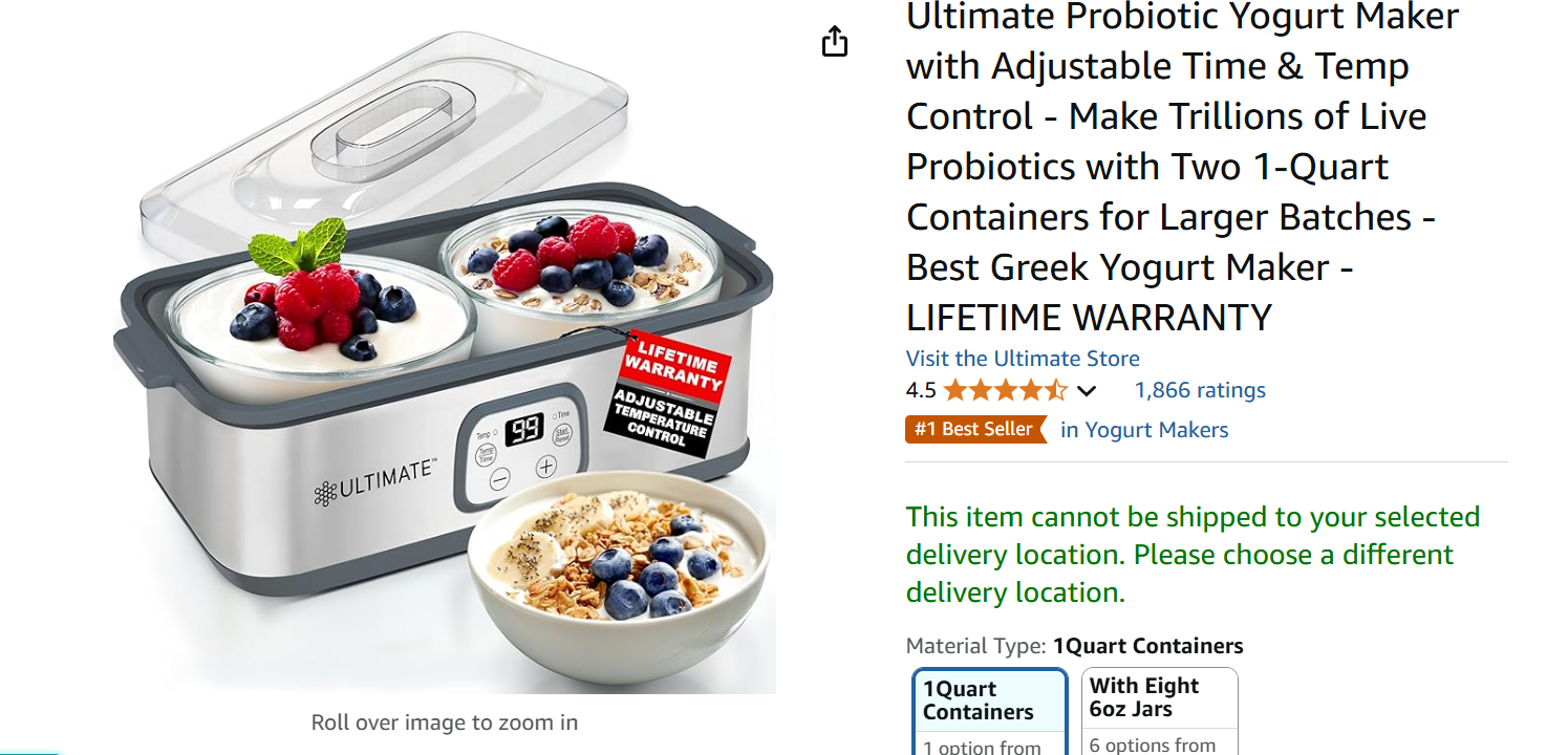 这款酸奶机操作简单,1夸脱的容量一次可制作两大杯;产品具有68-131°F的可调节温度设置,并且可以运行长达48小时,能为酸奶培养大量益生菌提供良好的环境,让消费者在家就制作可支持减肥、胶原蛋白形成和能量的益生菌,更有助于维护健康。